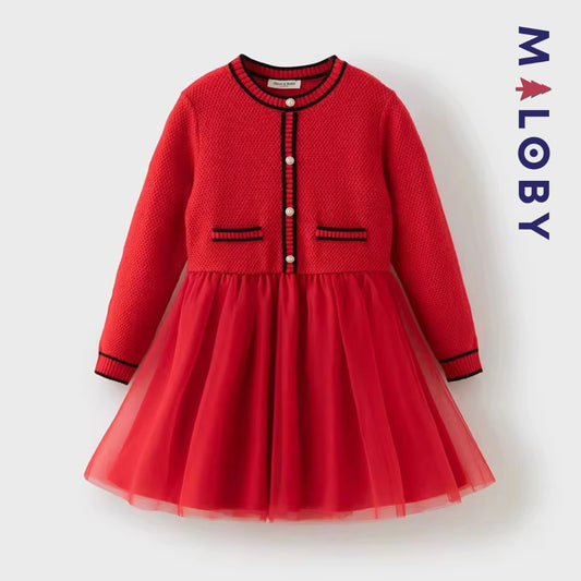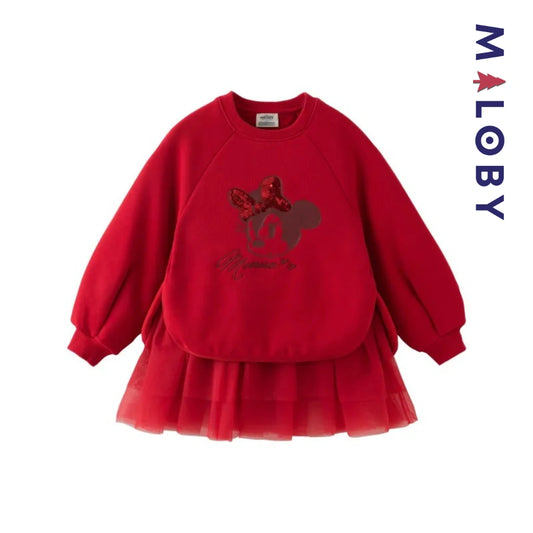 Robe sweat-shirt bi-matière motif Minnie enfant fille -Rouge
