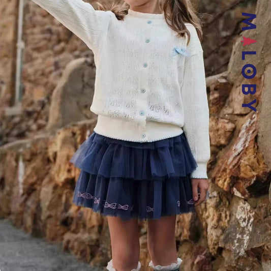 Jupe à volants en tulle enfant fille- Beige/Marine
