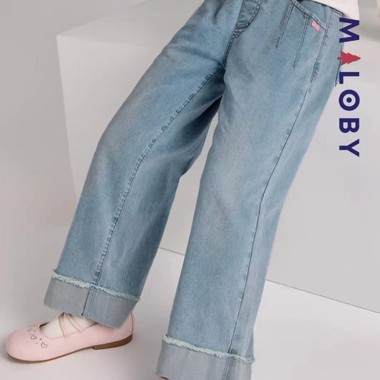 Pantalon denim avec large revers enfant fille-Bleu