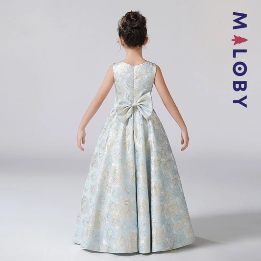 Robe longue de cérémonie à manches courtes- Bleu ciel