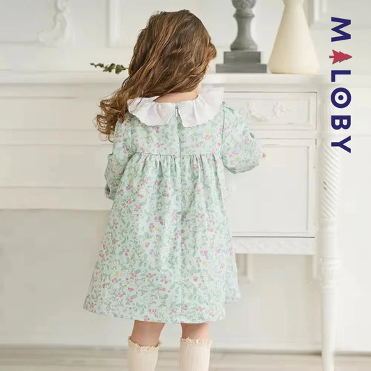 Robe à smocks fleurie manches longues enfant fille- vert imprimé
