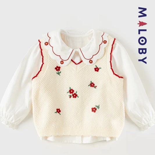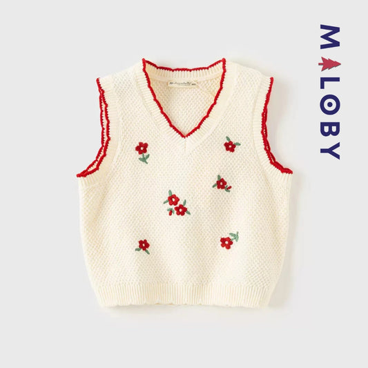 Pull en maille sans manches enfant fille - Beige
