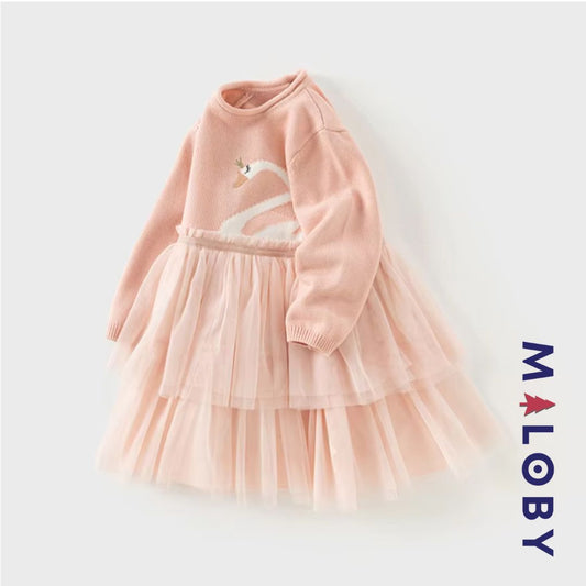 Robe princesse en maille et en tulle effet 2 en 1- Rose