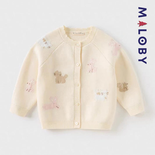 Cardigan motif animalier enfant fille- Beige