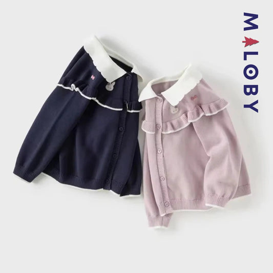 Cardigan à col claudine enfant fille- marine/violet
