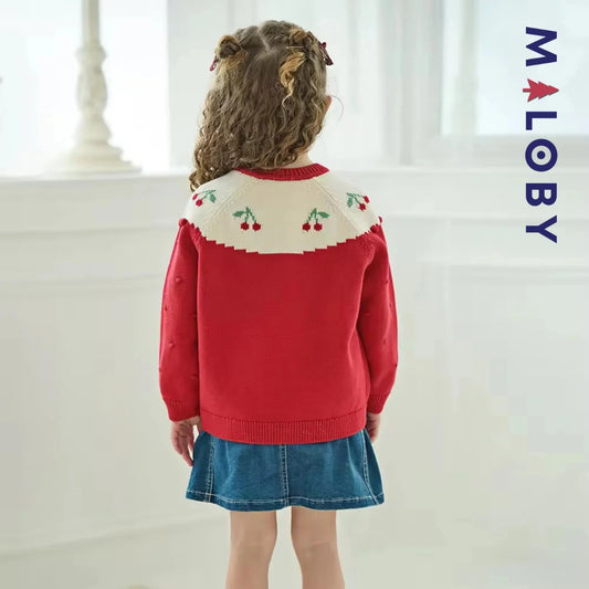Cardigan jacquard cerises enfant fille- Rouge