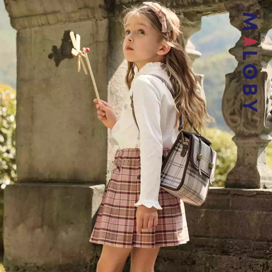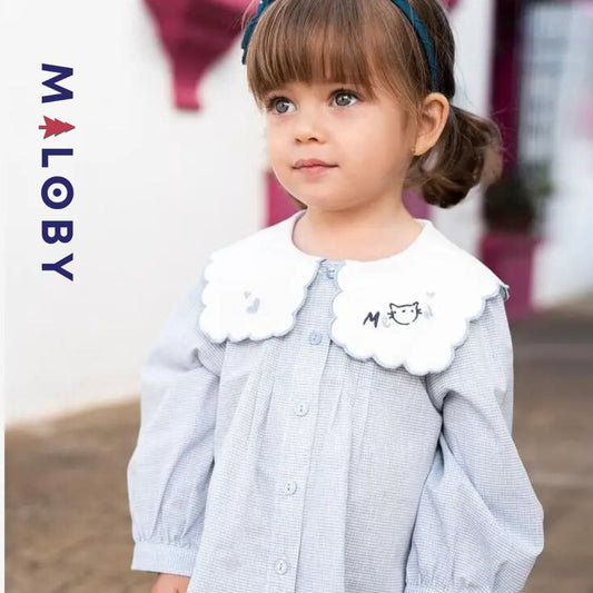 Chemise enfant fille à carreaux- Blanc/Bleu