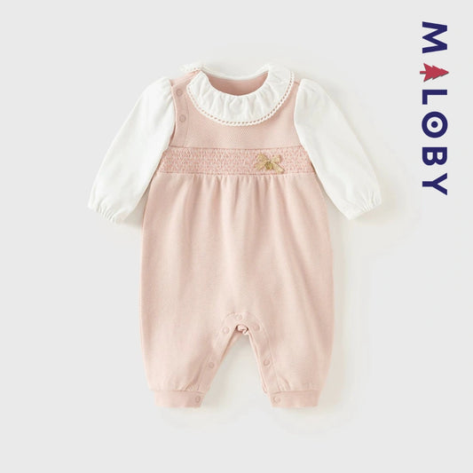 Combinaison longue effet 2 en 1 enfant fille -rose