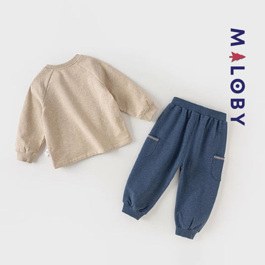 Ensemble garçon sweat + jogging- Bleu/beige