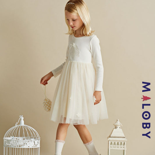 Robe de cérémonie effet 2 en 1 superposition en tulle fille - ivoire