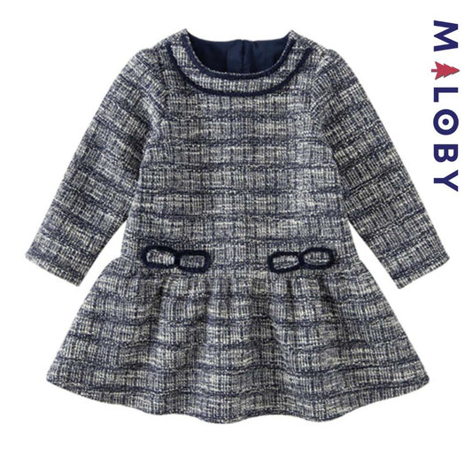 Robe manches longues fille - Marine/blanc