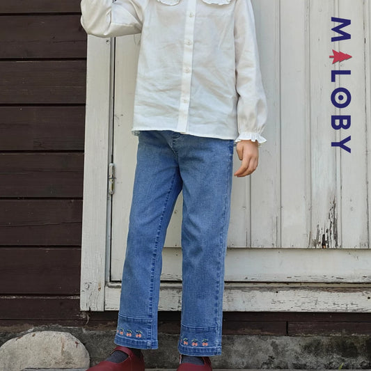 Jean brodé enfant fille - bleu moyen