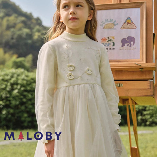 Robe en maille et en tulle effet 2 en 1 enfant fille - Beige