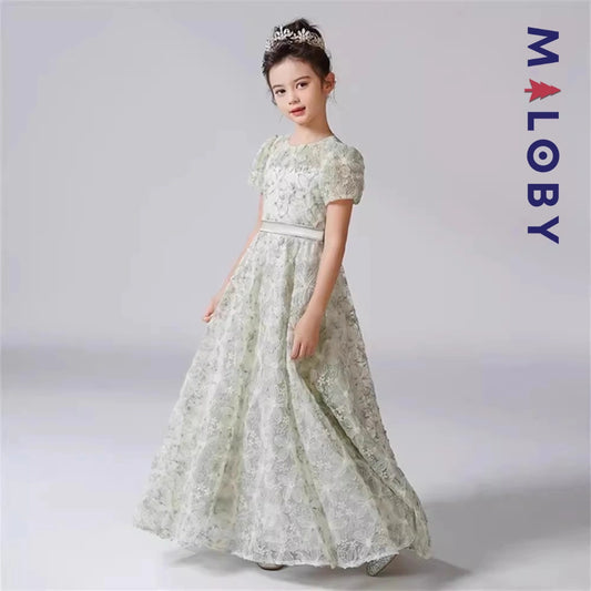 Robe de cérémonie florale enfant fille -Beige