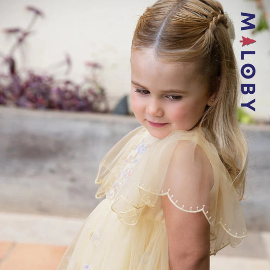 Robe cérémonie brodée fleurs enfant fille-jaune