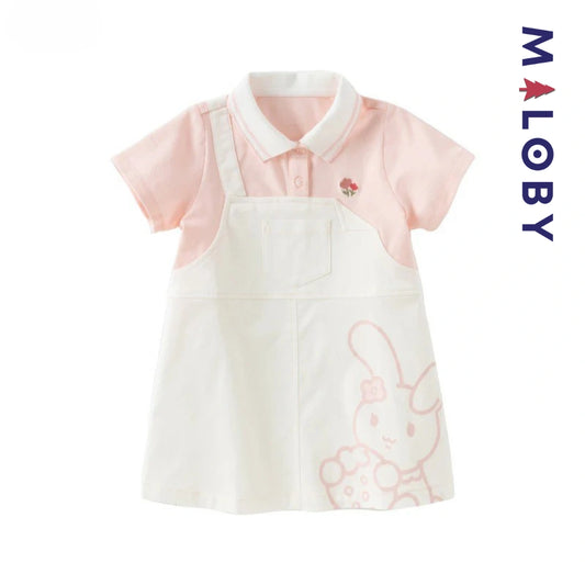 Robe d'été bi-matière effet 2 en 1 enfant fille- rose
