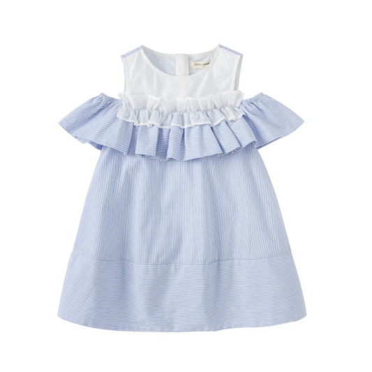 Ensemble combinaison +chapeau bébé fille - blanc/bleu