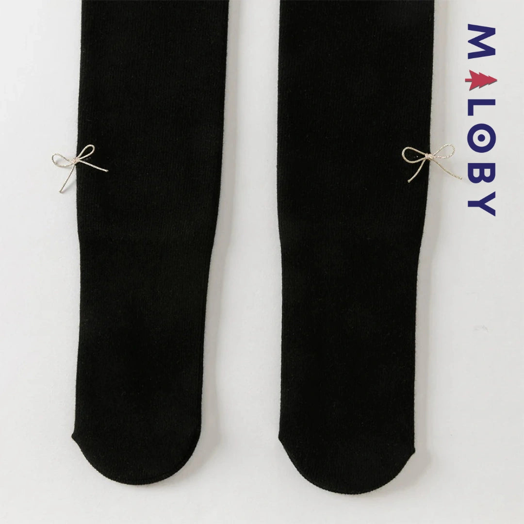 Collant épais à nœuds enfant fille- beige/noir
