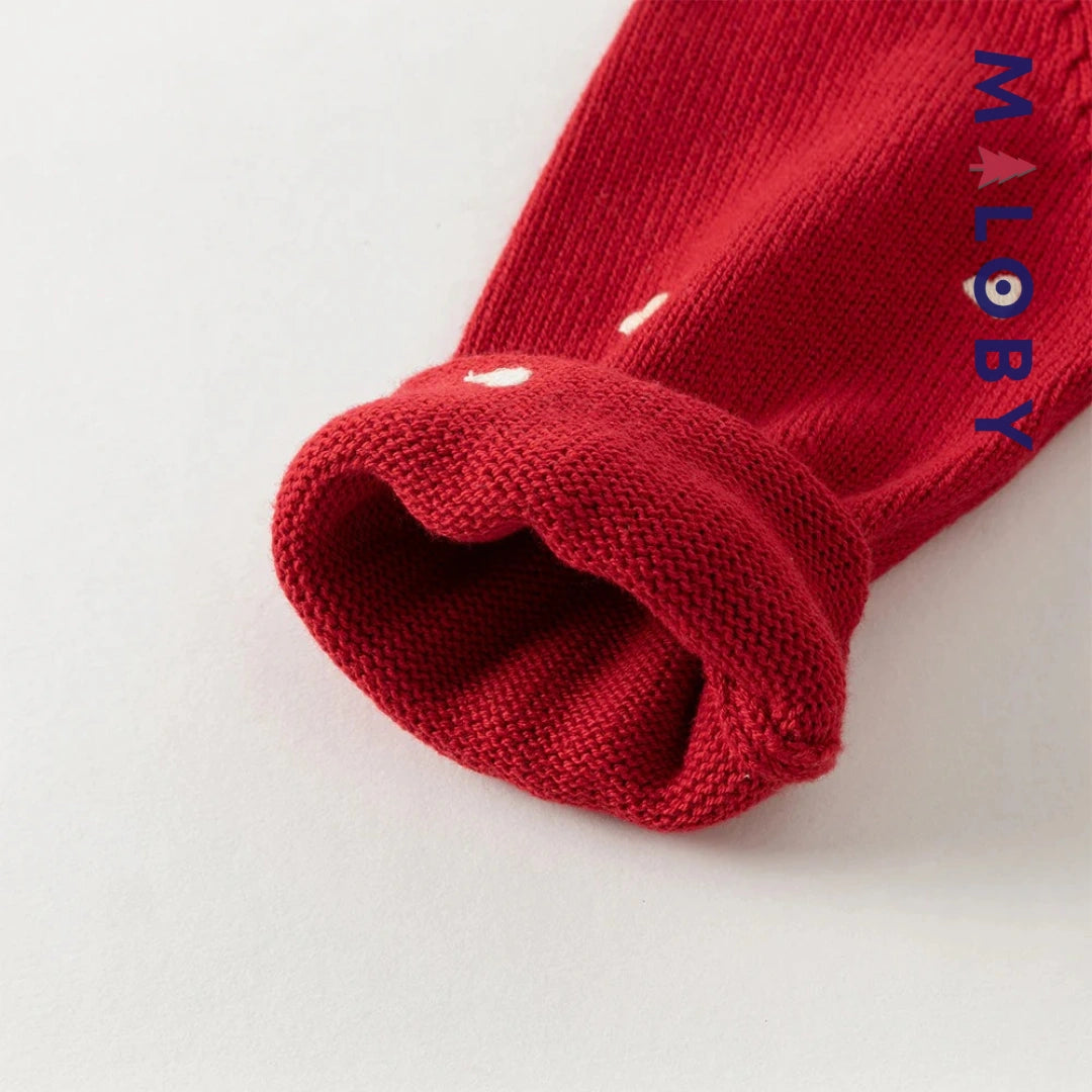 Pull en maille motifs cœurs enfant fille- Rouge / Beige